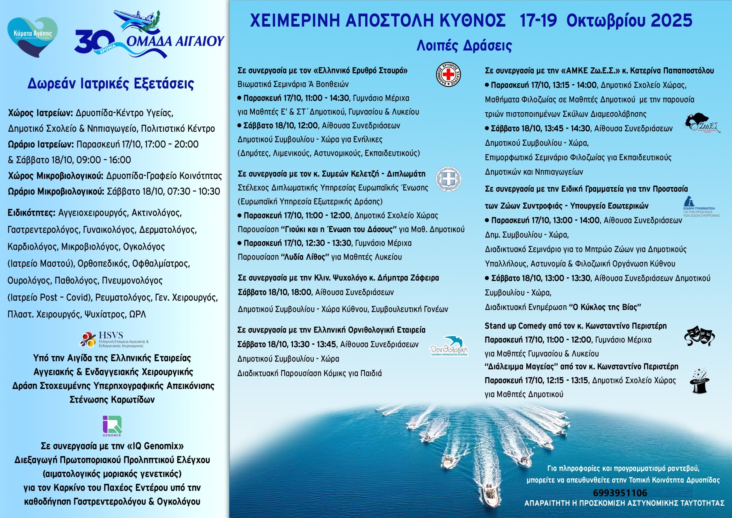 Δωρεάν Ιατρικές Εξετάσεις 17-19/10/2025 – ΟΜΑΔΑ ΑΙΓΑΙΟΥ