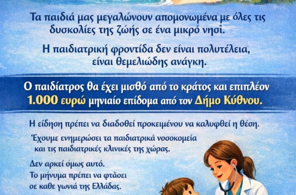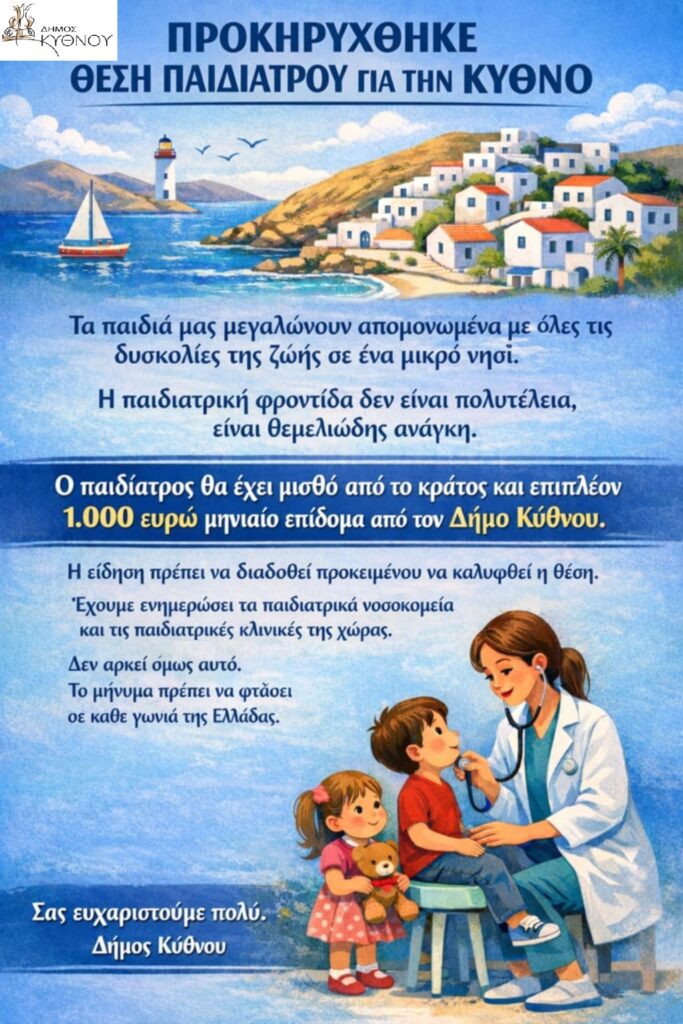 - Προκηρύχθηκε θέση παιδίατρου για την Κύθνο